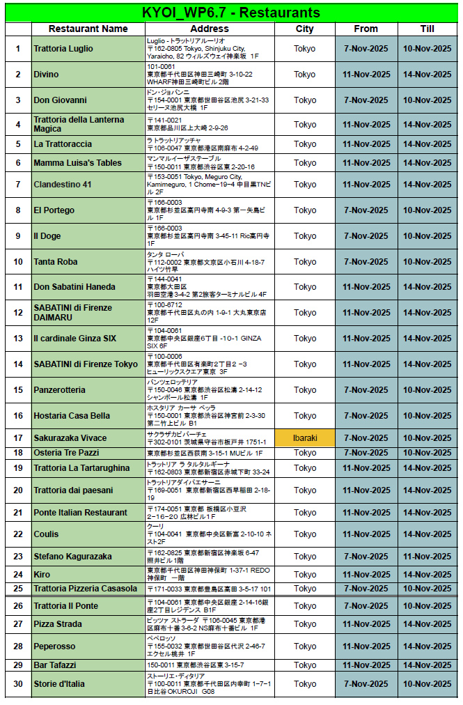 2025年 KYOI ペコリーノ・ロマーノ・DOP プロモーション参加レストラン